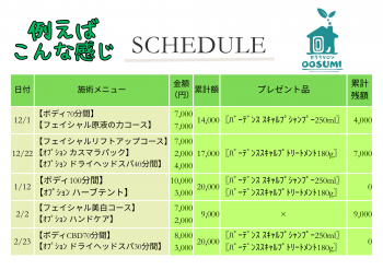 その日において10,000円を超える施術お支払金額であった場合は、プレゼント一つと 10,000円を超える金額は次回へ繰り越します